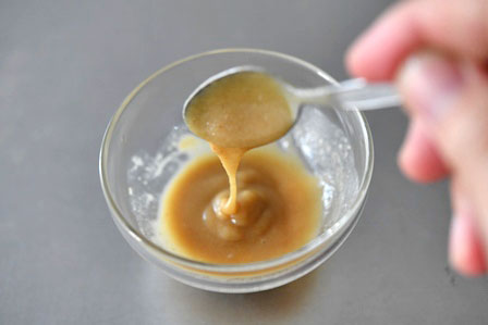 ※写真くらいの、ねっとりとした状態だけど、スプーンからたれる状態にします(水は若干必要な分量が前後するかもしれません)