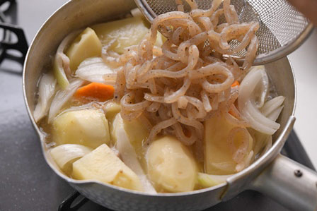 ※豚肉の風味が強いので、こんにゃくは少し太めの“突きこんにゃく”を使っています(あく抜き不要のものは、切らずにそのまま使えて便利!)。好みで糸こんにゃくに置き替えてもOKです。
