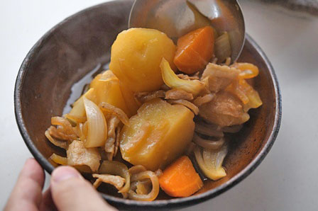 - 豚肉の風味が強いため、こんにゃくは食べ応えのある突きこんにゃくでも美味しいですし、同じく風味の強いにんじんも、肉じゃがの味わいによくなじむ仕上がりとなります。