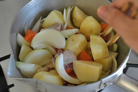 肉じゃがの具材の下ごしらえ