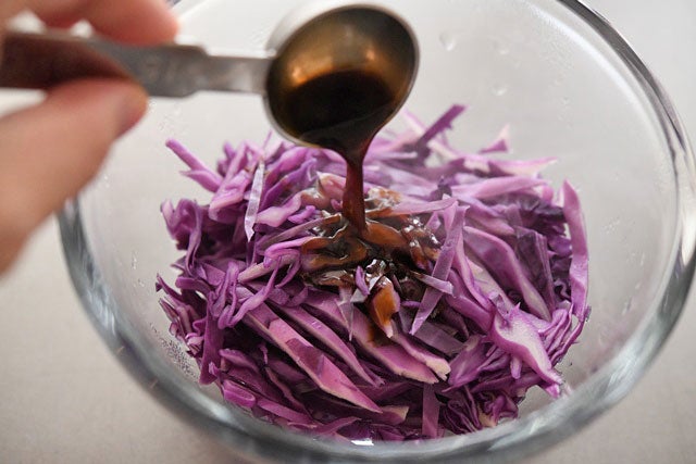 紫キャベツのウスターソースマリネの味付け