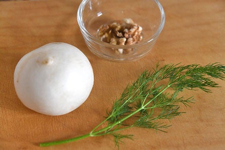 用意する主な食材は、小かぶ、クルミ、(好みで)ディルです。