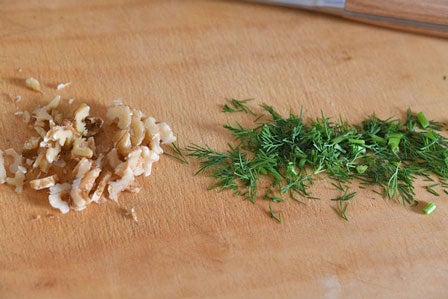 その間に、クルミとディルを写真くらいに刻んでおきます。