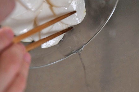 5分経ったらかぶから水分が出てきているので、その水を捨てます。