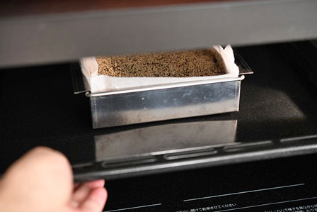 オーブンに入れる前に、芥子の実を全体にふりかけます。200℃のオーブンに入れ、【20分】焼きます。