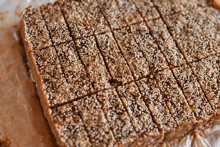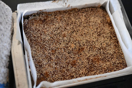 - 型に入れてならし、芥子の実をちらして焼く(20分)