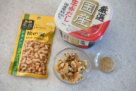 - くるみと松の実を併用したほうが、香りが複雑になって美味しいと思います。