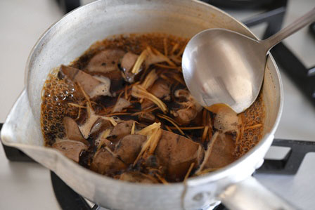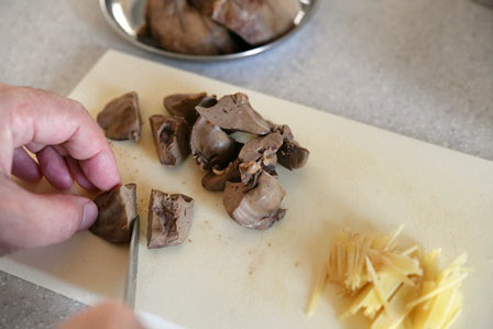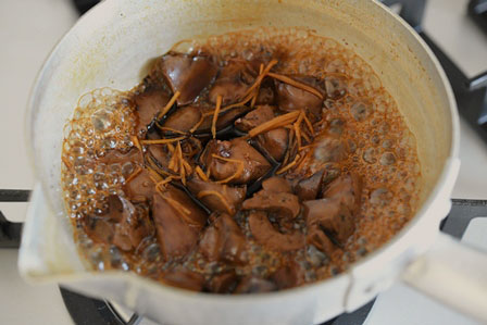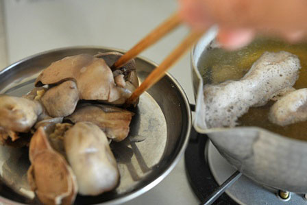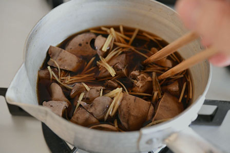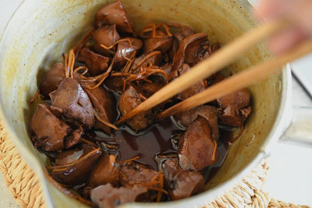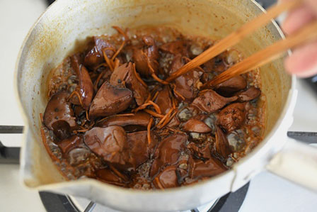 ※ハツがある場合は、ハツを半分に切り、間に血が固まっていたらそれを取り除き、一緒に煮てください。