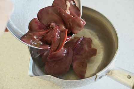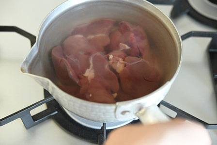 鶏レバーを下茹でする