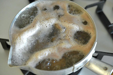 • 沸いたらアクをすくい取る