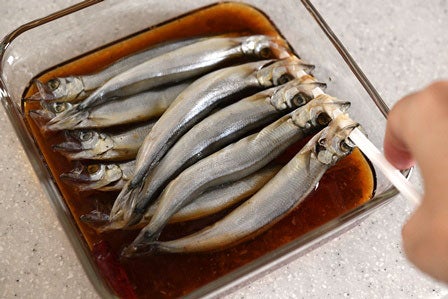 • そうすることで、南蛮酢の鰹節がししゃもに絡み、食べる時もしっかりと味がのったような状態でいただけるかと思います。