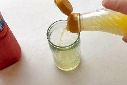 はじめに、コップに大さじ1ほどのゆず果汁を注ぎ入れます。