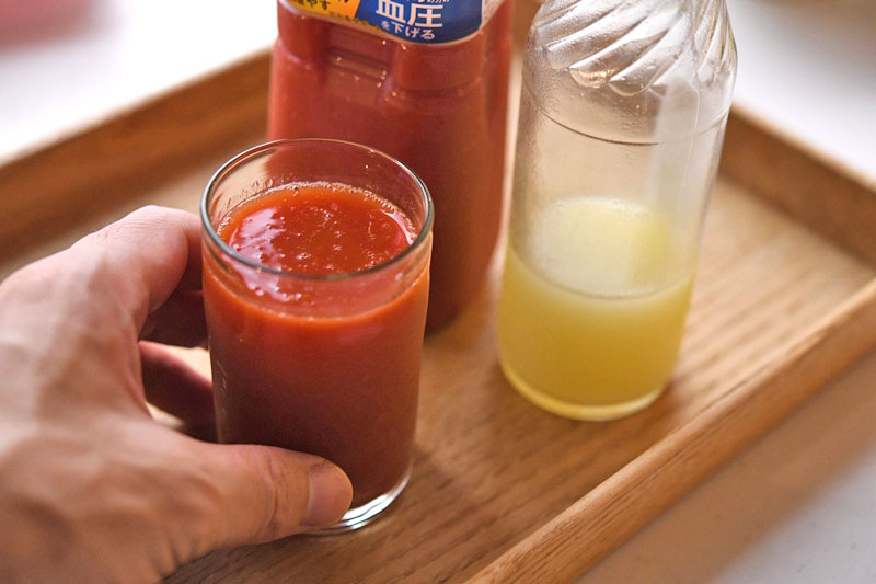 ③ トマトジュースも味わいがさまざまなので、飲んでみてゆず果汁が足りないようなら後から追加してください。これで出来上がり!